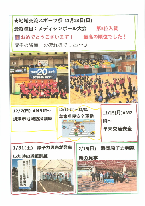 自治会防災訓練 年3回実施 焼津市計画要綱に基づいて自治会・各町内会で計画し一斉実施